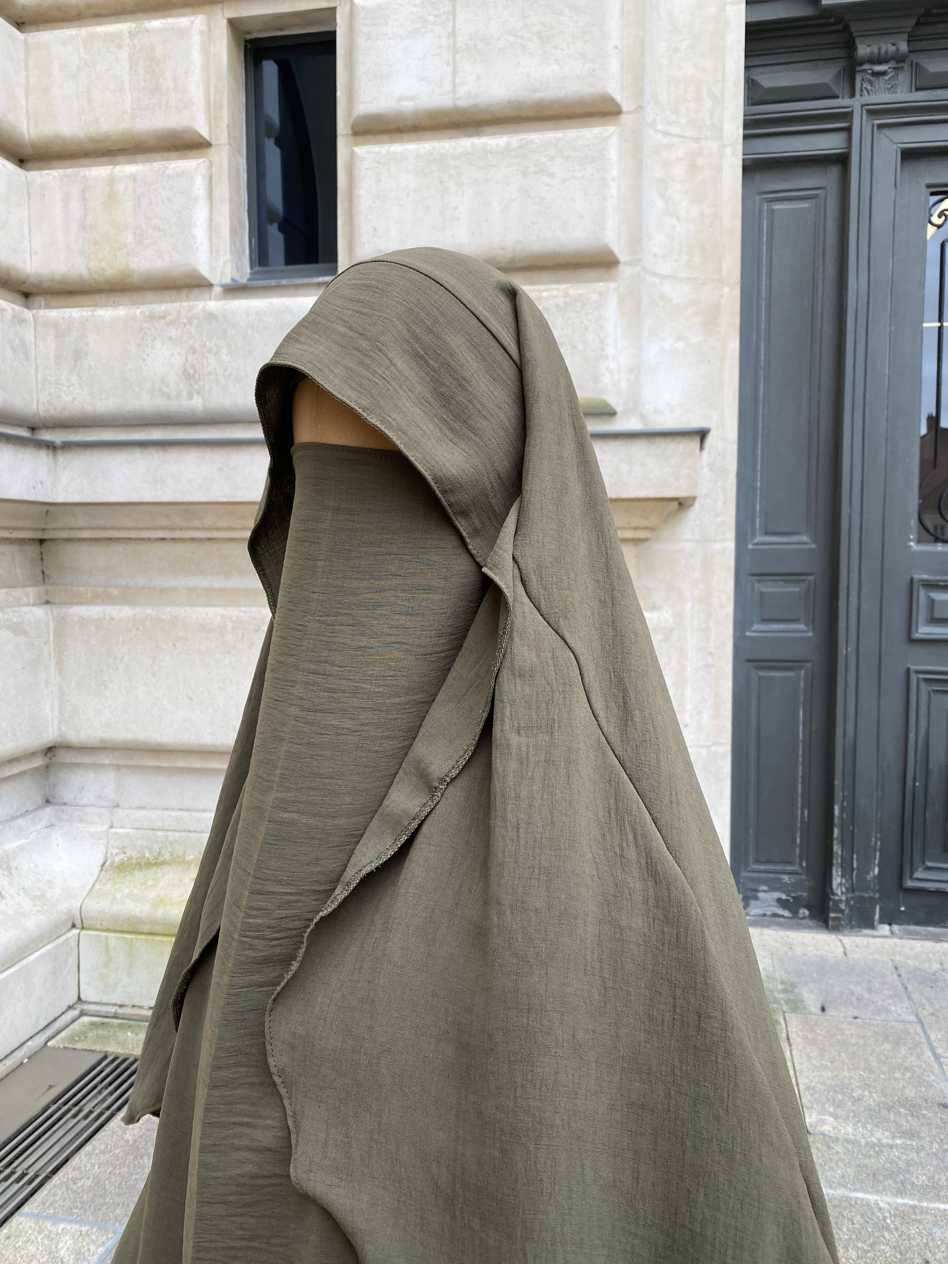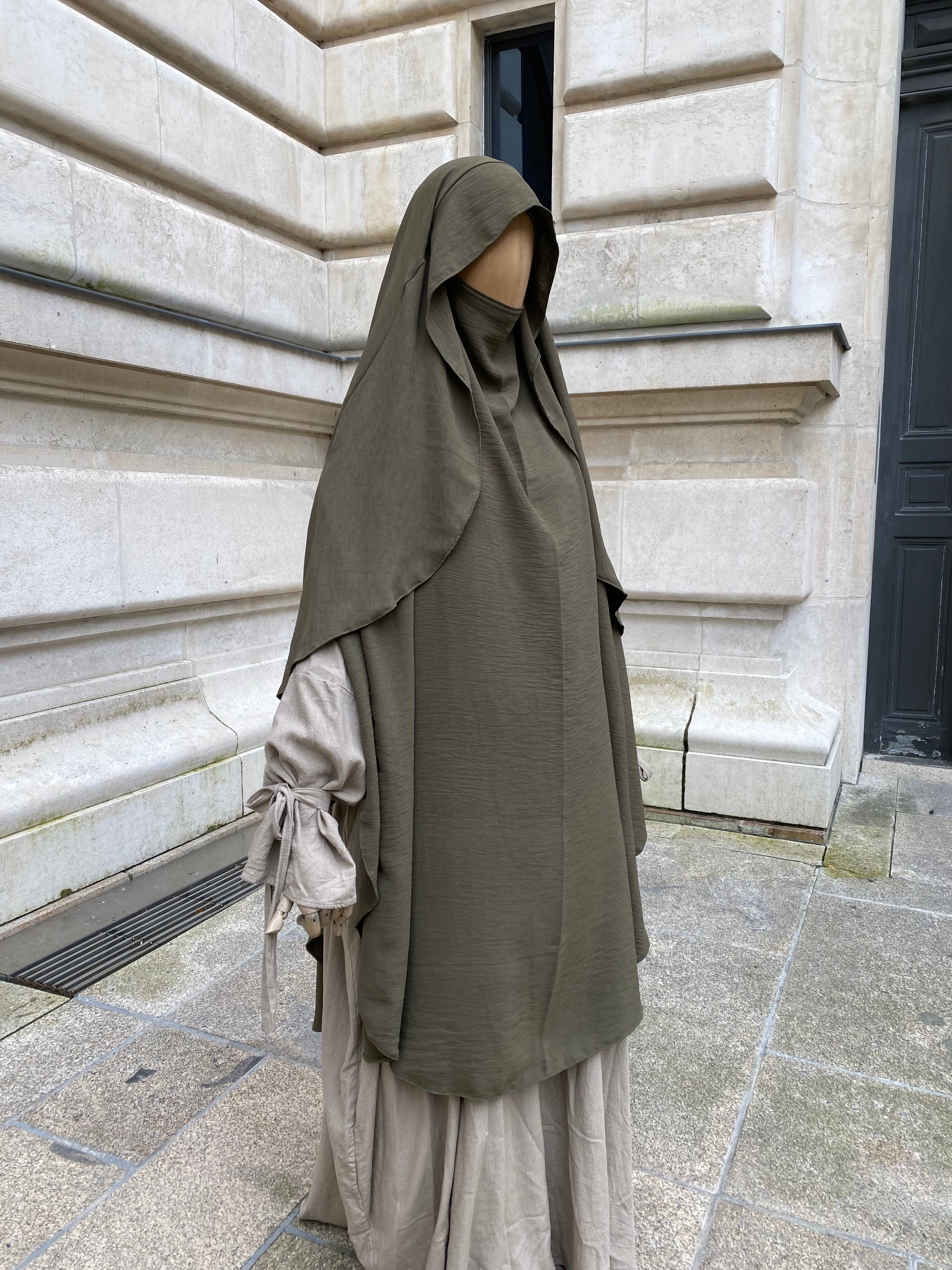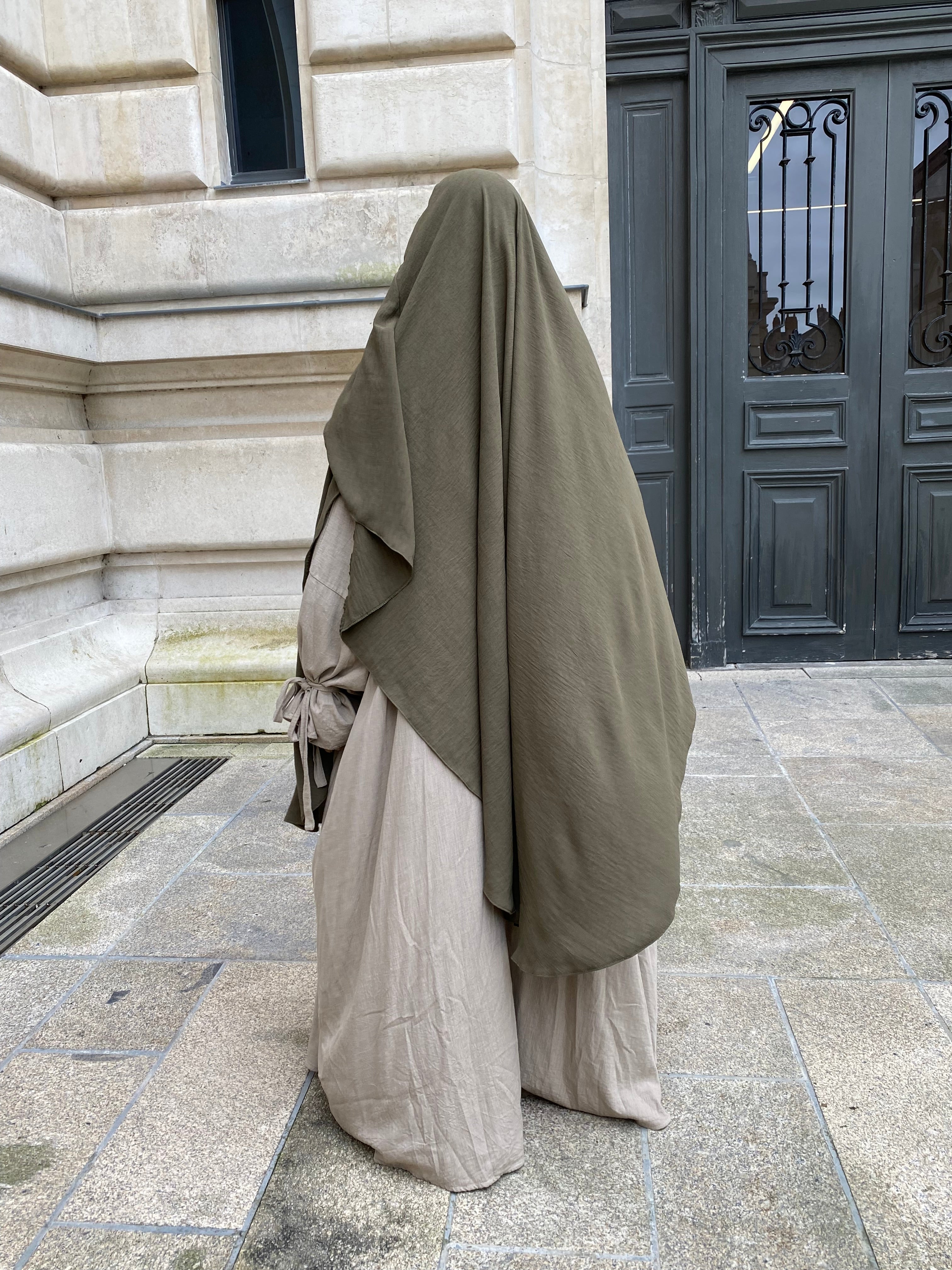 Fabriqué avec amour et minutie, ce khimar d'exception repousse les limites de l'élégance et de la couvrance. Avec sa large cape mesurant entre 1m50 et 1m60, il vous offre une protection maximale.